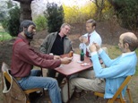 Joined in convivial conversation are realistic representations of sculptor Johnson himself with artists Bill Barrett, Red Grooms, and Andrzej Pitynski.